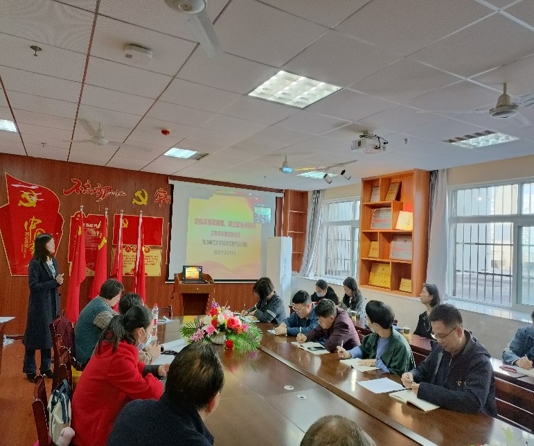 最后,党委书记邓光君同志就召开2021年度组织生活会的会前准备工作进行了部署安排,他强调,党员教师要有刀刃向内的勇气,及时发现问题,相互提醒、批评。