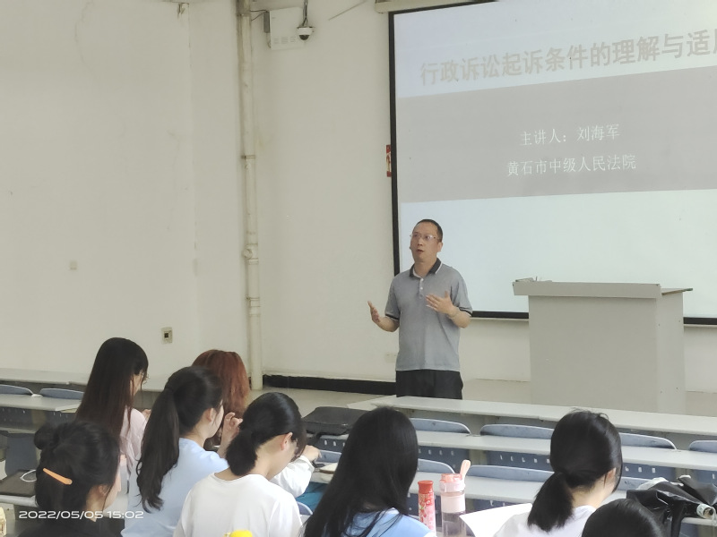 为更好宣传法律知识、深化学科实践理解,2022年5月5日下午,由吴昊、周勇飞等老师组织,于21BT05教室开展了以“行政诉讼起诉条件的理解与适用”为主题的行政审判实务讲座。
