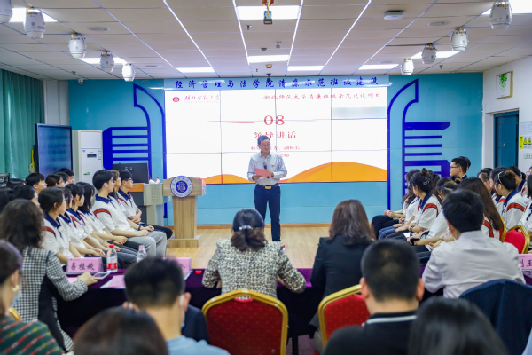 活动中,经管法学院党委书记邓光君为班级讲授微党课。他从“廉洁文化”的概念引入,阐述了新时代推进高校廉洁文化建设的意义和举措,并教育同学们要锤炼廉洁政治品格、牢记初心使命。