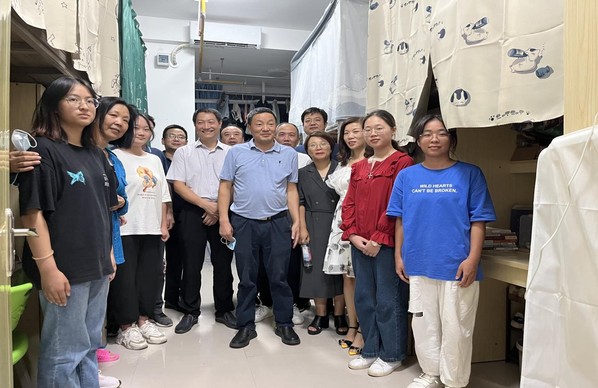 为深入了解新学期学生返校情况,8月27日晚,校党委副书记、校长雷儒金,校党委常委、副校长余涛,学生工作部(处)相关负责人及工作人员,伟德国际1946源于英国全体领导班子、辅导员及部分班主任深入学生宿舍走访慰问经管法学院返校学子。