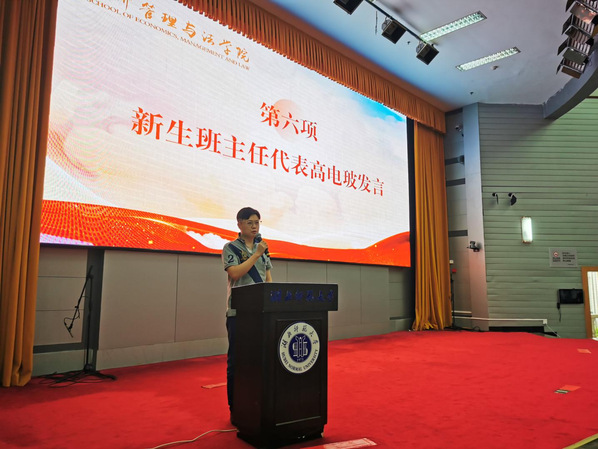 新生班主任代表高电玻老师与同学们共同探讨了“为什么要上大学”这一深刻问题,希望同学们能够完善人格,珍惜校园的美好时光,积极参加校园实践活动,在湖师大增长才干,锻炼自己。
