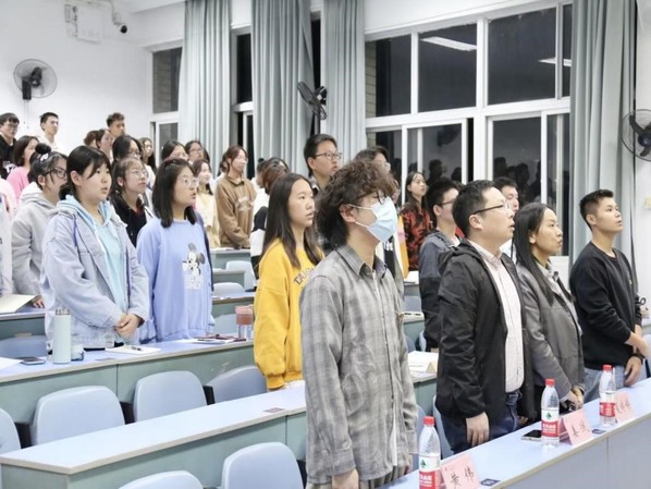 开班仪式在庄严的国歌声中正式开始。学生代表宣读了团课纪律文件,指出团课期间必须注意的事项。接着马克思主义学院2203班齐正雯同学作为学生代表进行发言,要珍惜机会、认真学习,带着为同学服务的初心和使命投入到工作与成长中,以团校培训为起点,在团结奋进中放飞青春梦想,为共产主义事业而奋斗。最后夏婷婷老师对本期团校的开班表示祝贺,并对全体学员提出了三点要求和希望:要抓好政治理论学习,不断提高思想政治素养;要不断提高政治站位,在学校各项工作中发挥作用;要抓好团务知识学习,切实增强实际工作能力。希望全体学员可以在学习期间,遵守团校纪律,学思结合,不断锻炼、提高自身的综合素质,争取早日成为一名合格的共青团员。