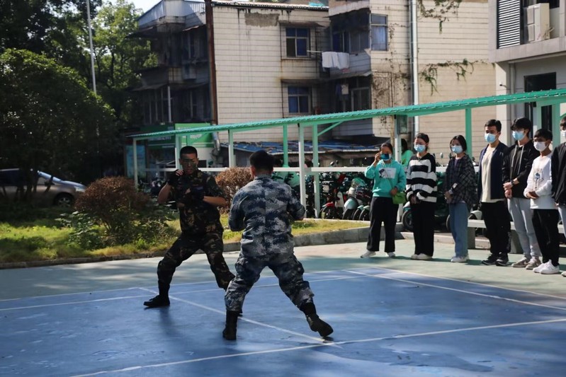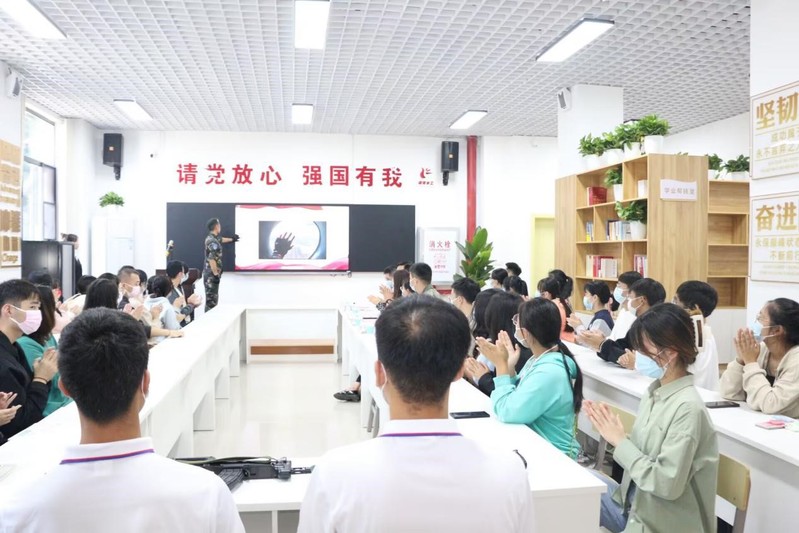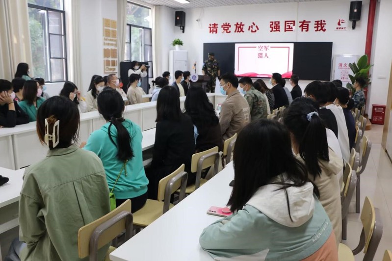 最后,宣讲会在张仕琛同学精彩的军事项目汇报表演中顺利结束。通过参与此次活动,增强了同学们爱国主义热情,坚定了为祖国携手并肩在新时代新征程上留下无悔的奋斗足迹,为实现中国梦强军梦作出新的更大贡献的信心!