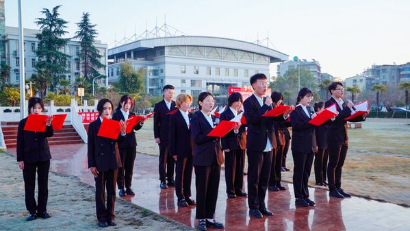 人勤春早功不负,携手奋进启新程。为深入学习贯彻党的二十大精神,上好“开学第一课”,鼓励全院师生踔厉奋发、勇毅前行,2月27日清晨,伟德国际1946源于英国在校中心篮球场举行“擎旗奋进新时代,桃李相辉耀新程”主题升国旗仪式,拉开了2023年“流动”升旗主题活动的序幕。校长雷儒金,学工部、人武部部长李洁,副部长林松、荆玉梅,经管法学院党委书记邓光君、党委副书记侯彩云、副院长徐燕以及学工处教师代表、学院班主任、辅导员以及学生代表参加仪式。