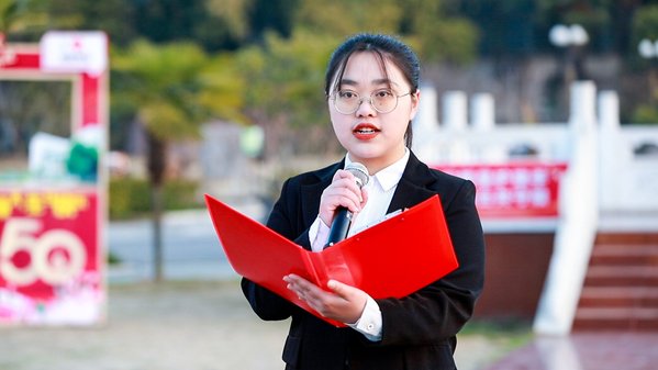 学生代表许雨阳以《青春践行二十大,五秩奋进新征程》为题进行国旗下的演讲。她号召新时代的青年大学生,要以党的二十大精神为指引,将自身发展融入到国家发展的步伐中,争做社会主义事业的合格建设者和可靠接班人,鼓励同学们要勤奋学习,刻苦钻研,以优异的成绩为学校50周年校庆献礼喝彩。