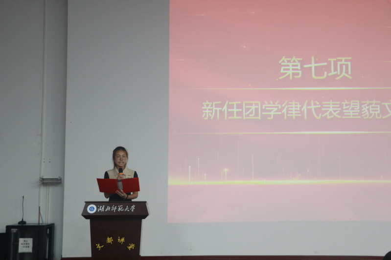 学生会主席望藐文作为第五届团学学生干部代表发言,她向学院领导老师以及历届的学长学姐表达了感谢与敬意,同时她对未来学生干部工作提出了倡议,秉持“以知促行,开拓创优”的宗旨,将“协助老师,服务同学”作为工作重心,打造“有凝聚力、有执行力”的优秀集体,为学院的发展贡献青春力量。