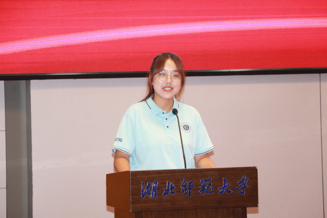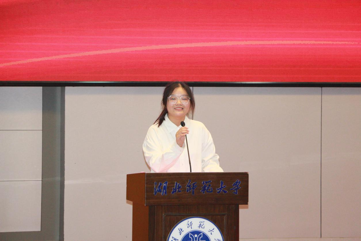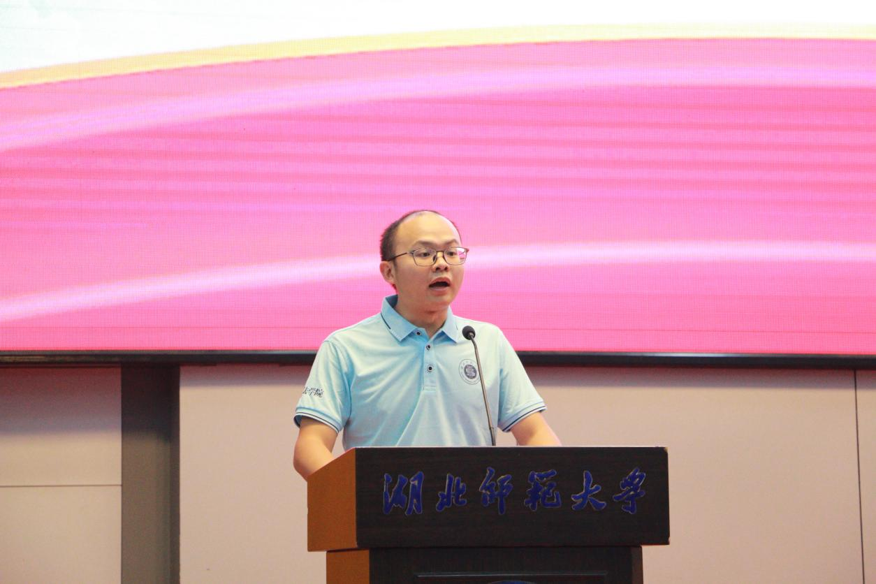 雷泽奎老师作为新生班主任代表上台发言,向2023级全体新生表示欢迎,希望新生树立远大理想,不负韶华,在湖师的舞台上展现最靓丽的青春色彩。