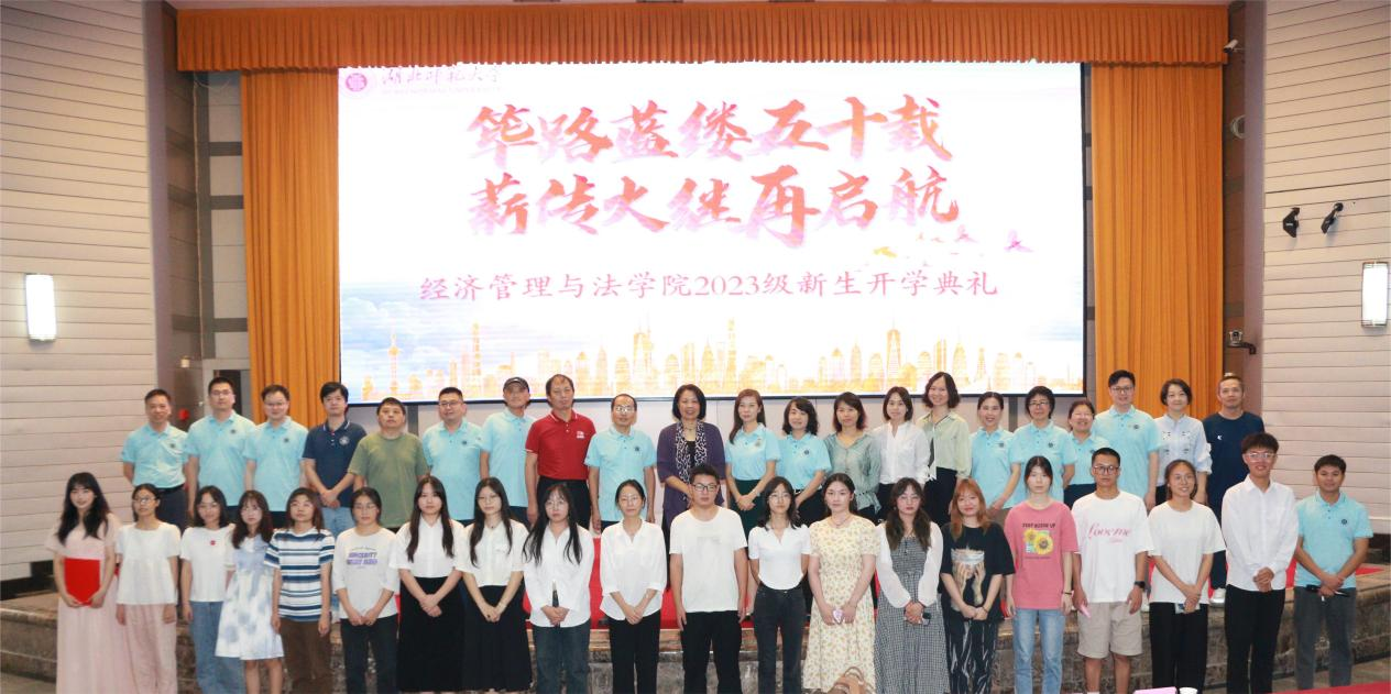 秋风微凉,丹桂飘香。9月28日中午12:30,伟德国际1946源于英国“筚路蓝缕五十载,薪传火继再启航”2023级新生开学典礼在教育大楼报告厅隆重举行。经管法学院党委书记常婕、党委副书记侯彩云、副院长冯伟林、副院长沈燕出席典礼,系主任、班主任和辅导员等全体教职员工,2023级新生及老生代表参加。