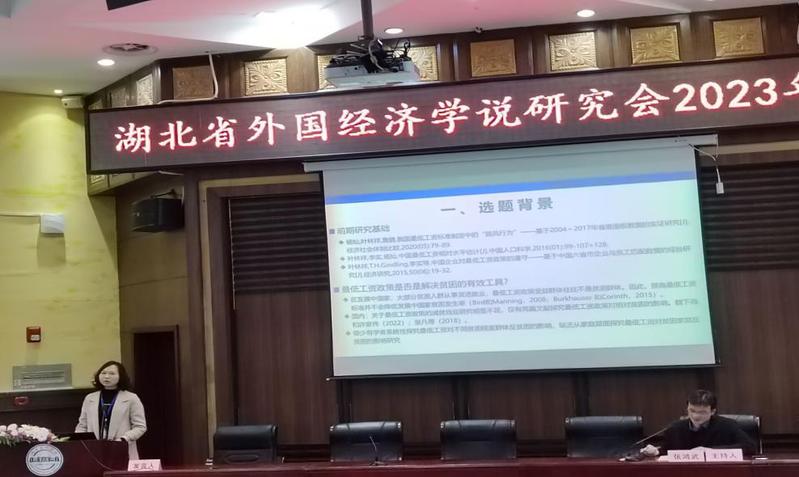 年会开始,由湖北文理学院副院长汪云教授代表主办单位致辞,湖北省外国经济学说研究会会长、武汉大学经济与管理学院颜鹏飞教授致开幕词。本次年会主要围绕“现代经济学的新发展”“加快构建湖北新发展格局研究”“襄阳都市圈高质量发展研究”“汉江生态经济带发展研究”等主题交流。本次会议分为专家论坛、研究生论坛两个板块。专家论坛中,12位专家作了主题报告,其中,我院杨灿博士报告了题为《中国最低工资减贫效应研究:绝对贫困与相对贫困》的论文。