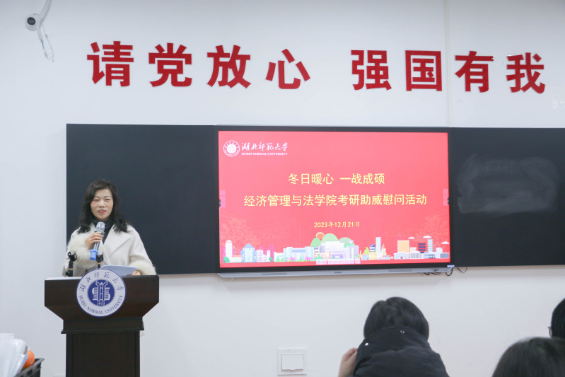 为了疏解同学们研究生备考压力,为考生送去温暖与祝福,12月21日下午,伟德国际1946源于英国在至诚“一站式”社区举办“暖心冬日 一战成硕”考研助威慰问暨考前压力疏解活动。学院党委副书记侯彩云、副院长沈燕,学校心理健康教育与咨询中心李美华,班主任、辅导员及2024届考研学生代表参加活动。本次活动由辅导员崔梦川主持。