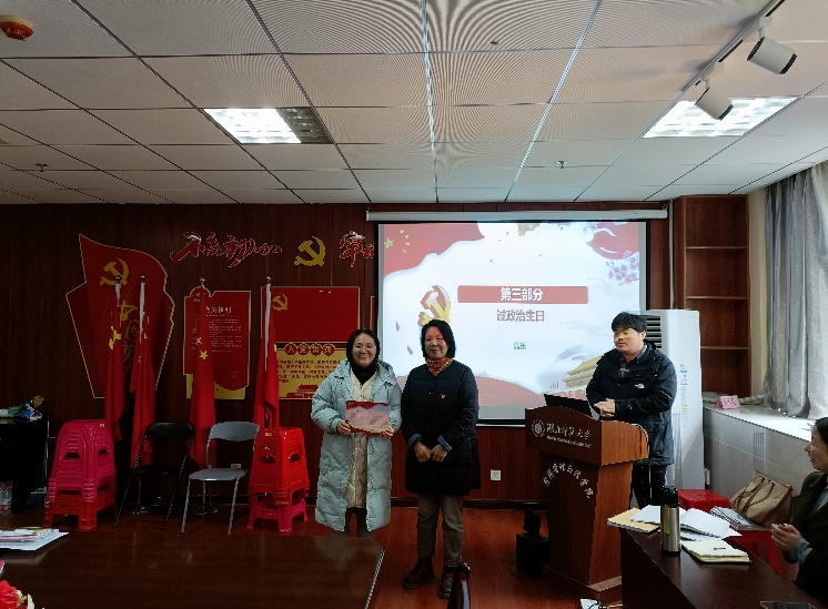 会上,在完成交纳党费、重温入党誓词和集体诵读党章等规定动作后,支部为一月份入党的高乐同志过政治生日。集中学习环节,常婕同志领学《习近平总书记在纪念毛泽东同志诞辰130周年座谈会上的重要讲话精神》,侯彩云同志领学《习近平对“三农”工作作出重要指示》,沈燕同志领学《深入学习贯彻中央经济工作会议精神 狠抓落实推动高质量发展》,冯伟林同志领学《习近平总书记教育重要论述讲义》。随后,全体党员集中观看了《党课开讲啦》,党课以《星火之地 工业新城》为主题,讲述在中国共产党领导下,黄石这座老工业城市如何在传承与奋进中擦亮工业金字招牌,焕发澎湃活力的动人故事。在交流发言环节,江喜林同志、张莉同志结合工作实际,聚焦重点任务,进行了热烈的交流和讨论。他们表示,作为一名高校教师,要紧跟国民经济行业的新变化、新动态、新趋势,及时更新经济学科知识体系,提高学生专业实践能力,将经济强国的目标与高校育人工作结合,形成高素质经济金融人才的实践培养机制,最大限度发挥国民经济行业发展与人才培养的协同效应。现场召开了党员大会,开展2023年度民主评议党员。陈帅飞同志介绍了民主评议的相关政策与具体规则,随后,采取无记名投票的方式进行了民主测评,并公布了评定结果。