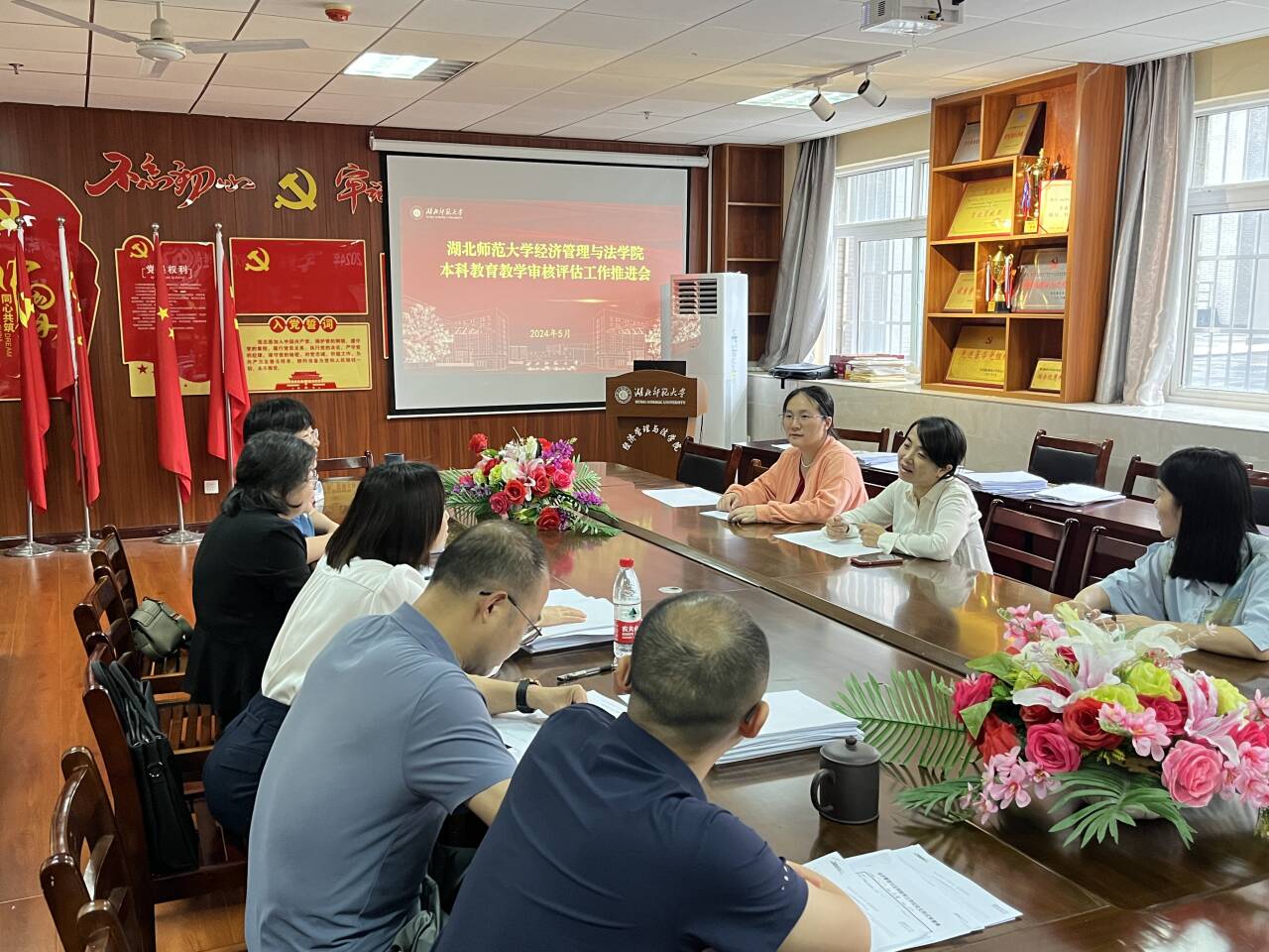 2024年5月10日,伟德国际1946源于英国在人文楼21B228会议室召开本科教育教学审核评估工作推进会。学院教学副院长沈燕,院长助理赵贤利,系主任冯灵、黄梅、雷泽奎、曹子瑛,教学办周芳、高乐等参加本次会议。会议由沈燕副院长主持。