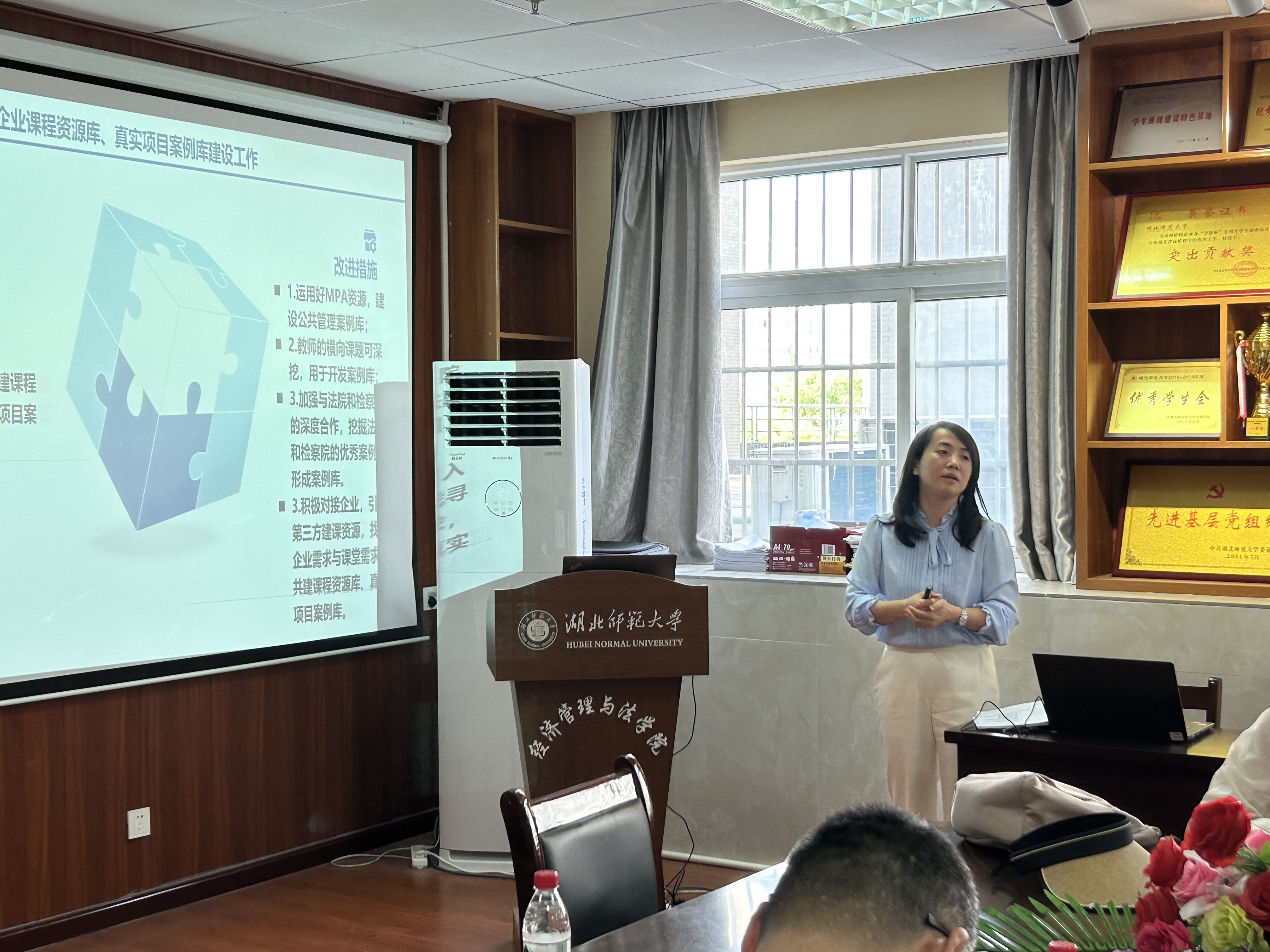 教学副院长沈燕详细汇报了学院自2023年10月以来迎接审核评估所开展的一系列工作。围绕15个重点任务完成情况和五类教学档案的自查情况,全面展示了学院在专业内涵建设、课程建设、资源建设、师资队伍建设、学生培养、教学档案建设等方面的成果与改进,充分体现了学院对教育教学审核评估工作的高度重视。