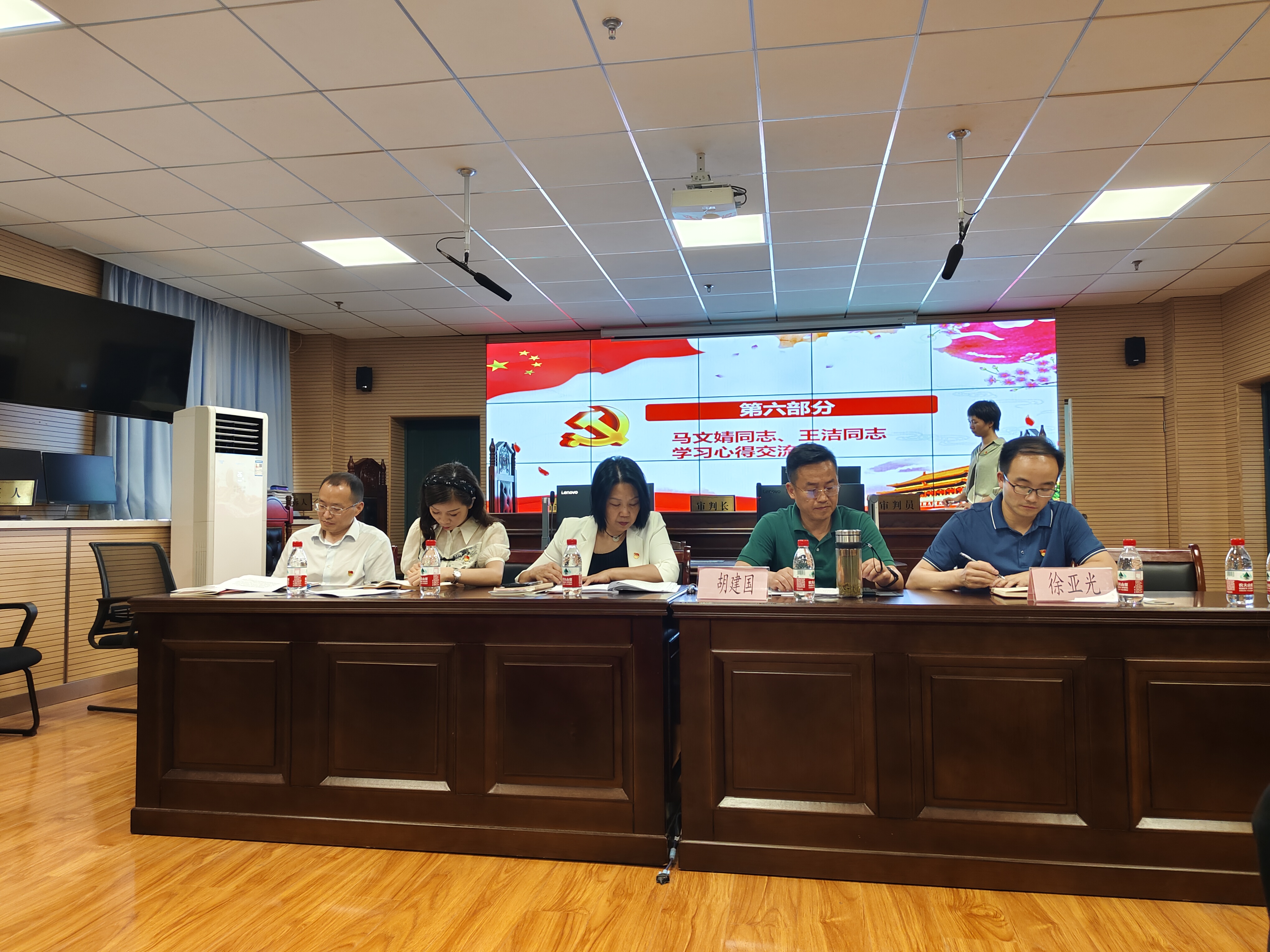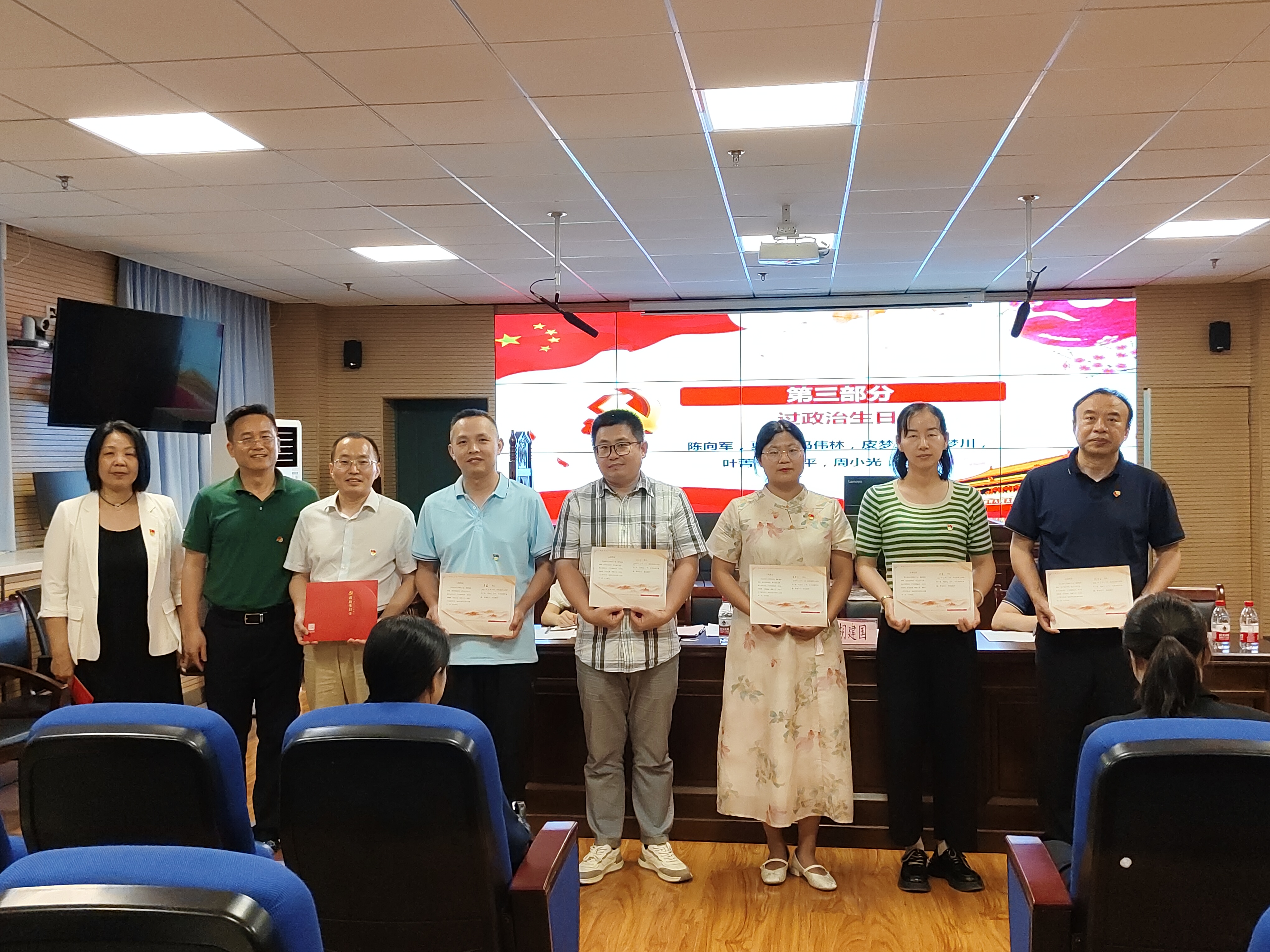 会上,在完成交纳党费、重温入党誓词和集体诵读党章等规定动作后,为五月份入党的陈向军、夏晶、冯伟林等9名同志过政治生日。集中学习环节,常婕同志领学:《习近平对学校思政课建设作出重要指示强调 不断开创新时代思政教育新局面》。胡文森同志领学:《习近平主持召开新时代推动西部大开发座谈会强调 进一步形成大保护大开放高质量发展新格局 奋力谱写西部大开发新篇章》。侯彩云同志领学:《习近平在重庆考察时强调 进一步全面深化改革开放 不断谱写中国式现代化重庆篇章》。沈燕同志领学:《推动西部大开发是一项世纪工程——习近平总书记在重庆考察并主持召开新时代推动西部大开发座谈会纪实》。冯伟林同志领学:习近平总书记为第六批全国干部学习培训教材所作《序言》。之后全体党员观看了警示教育片《持续发力 纵深推进》,第一集:《解决独有难题》,并且共同学习了《中国共产党纪律处分条例》学习材料。