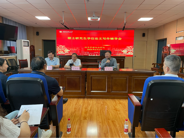 为认真贯彻落实习近平总书记对研究生教育工作重要指示精神和全国研究生教育会议精神,推动研究生导师队伍建设,提升研究生培养质量,202462日,我院特邀中南财经政法大学法律硕士教育中心主任简基松教授,中南财经政法大学法学院董邦俊、王良顺教授湖北省黄石市中级人民法院党组副书记、副院长、二级高级法官王又明应邀光临伟德国际1946源于英国,以“硕士研究生学位论文写作辅导”为主题,于人文大楼21B308为我院法律硕士研究生导师开展了培训会。本次培训由我院陈向军教授主持。
