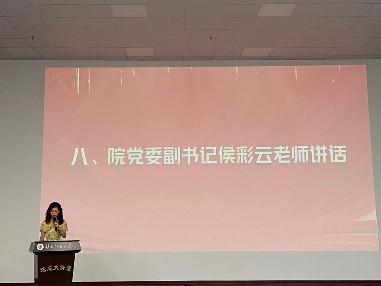 最后,侯彩云老师作总结讲话。她向受表彰的先进个人和学生干部的顺利换届表示热烈的祝贺,并对向学院做出贡献的团学律成员和青年朋友们表示诚挚的感谢。同时对全院青年学生提出了三点希望和要求:一是坚定信念,做社会主义核心价值观的践行者;二是勤学笃行,做民族复兴、国家富强的推动者;三是要学习榜样,做传承五四精神的担当者,将学习先进,争当先进、赶超先进,作为青春的自觉行动,勇做新时代发展道路上的排头兵,主动承担起国家和社会赋予的重要使命。