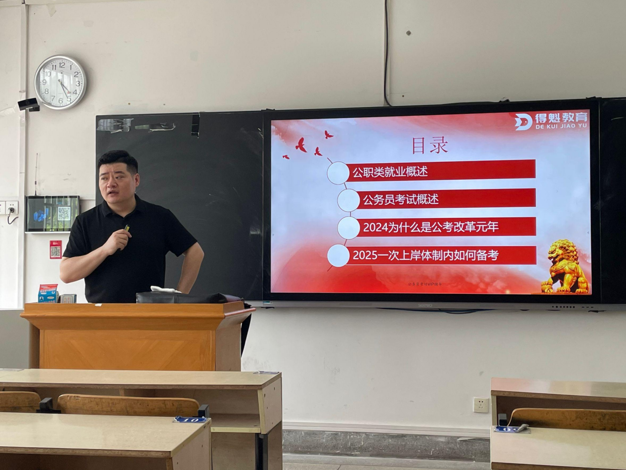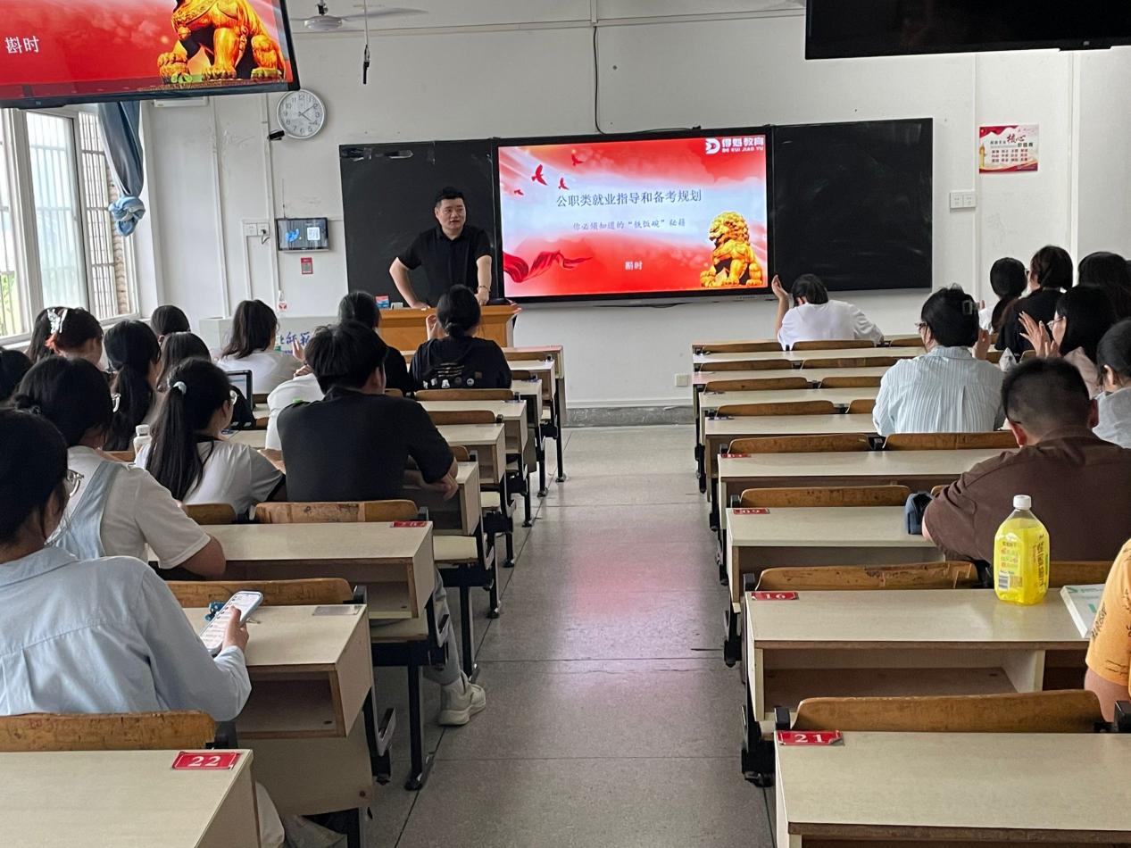 为贯彻落实毕业生就业指导工作,促进毕业生实现高质量就业,增强同学们的公考能力,伟德国际1946源于英国于6月20日下午特邀得魁教育讲师斟时为2025届毕业生开展公职就业指导和职业规划指导讲座。