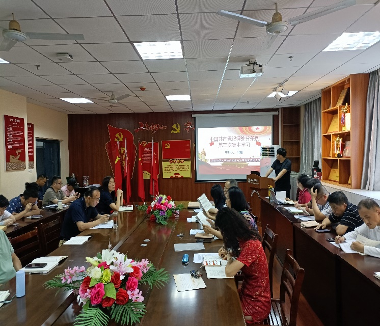 2024621日下午,教工支部全体党员在人文楼21B228会议室开展了“学纪明责筑忠诚 务实笃行促发展”主题党日活动,本次活动由教师第二党支部书记陈帅飞同志主持。