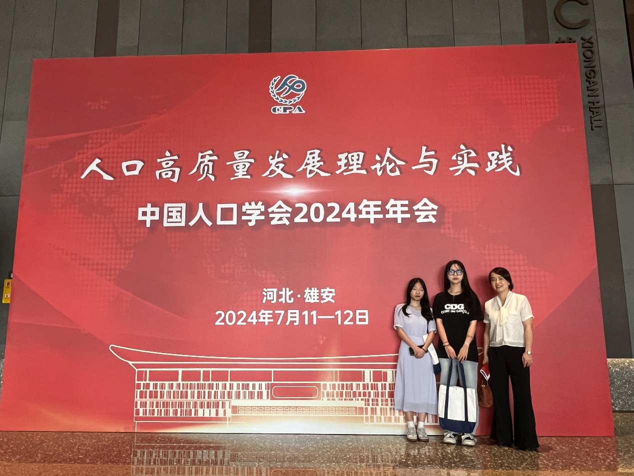 2024年7月11日至12日,以“人口高质量发展理论与实践”为主题的中国人口学会2024年年会在河北雄安新区举行,会议由中国人口学会主办。我院副院长沈燕以及2023级应用经济学研究生钟莹莹、社会工作研究生陈龚受邀参加本次论坛。