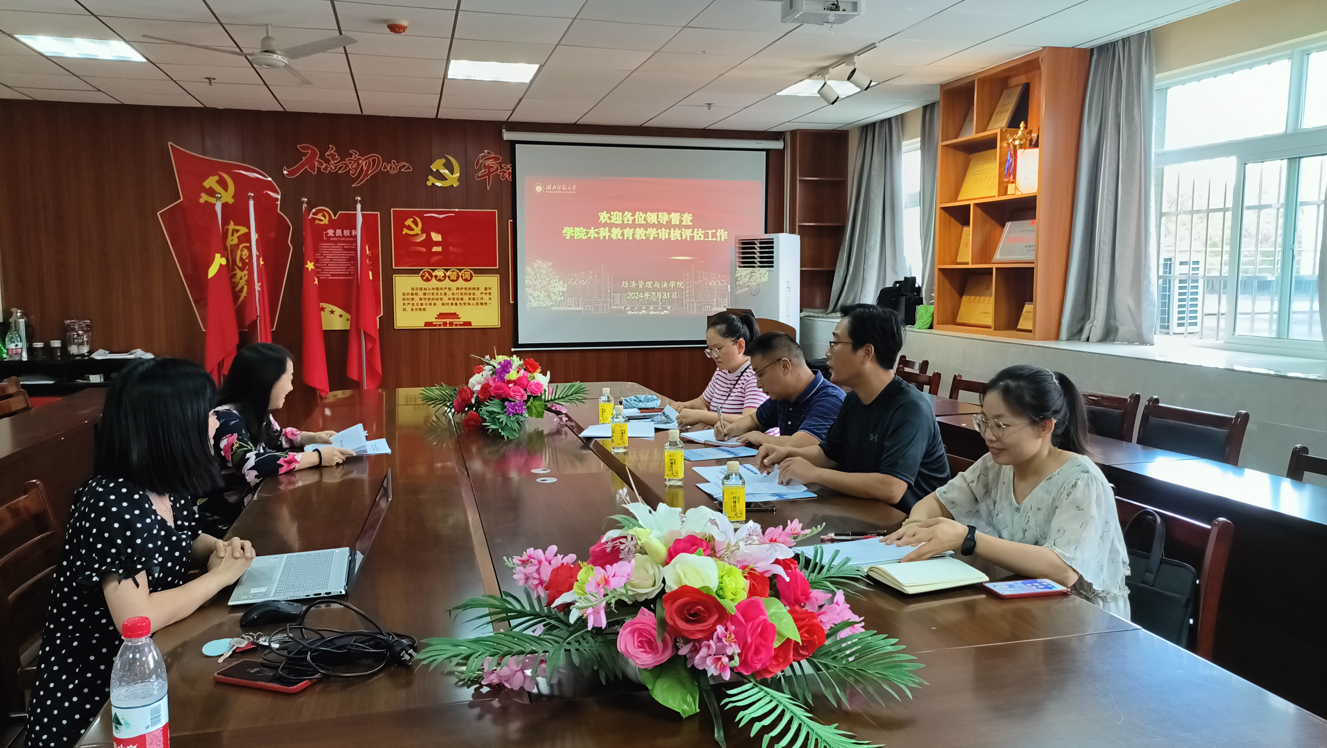 2024年7月31日下午,教务处联合学校纪委对伟德国际1946源于英国本科教育教学审核评估巡礼工作进行督察工作。学院教学副院长沈燕、院长助理赵贤利、教学办秘书高乐在人文楼21B228会议室参加了会议。