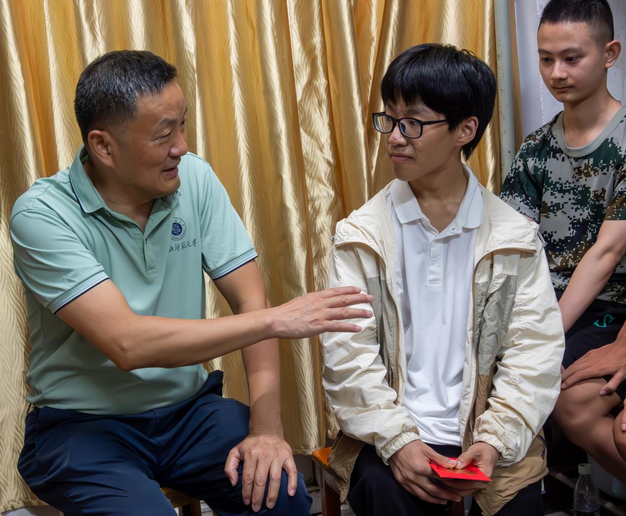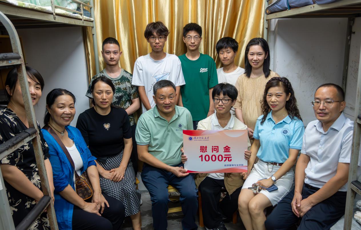 随后,雷儒金一行接续走访了31栋新生宿舍。在了解到学生身体状况不佳时,他当即与相关部门联系,帮助学生解决生活困难,并为学生送上慰问金。雷校长嘱咐学生要踔厉奋发、学有所成,将来奉献社会、服务人民。