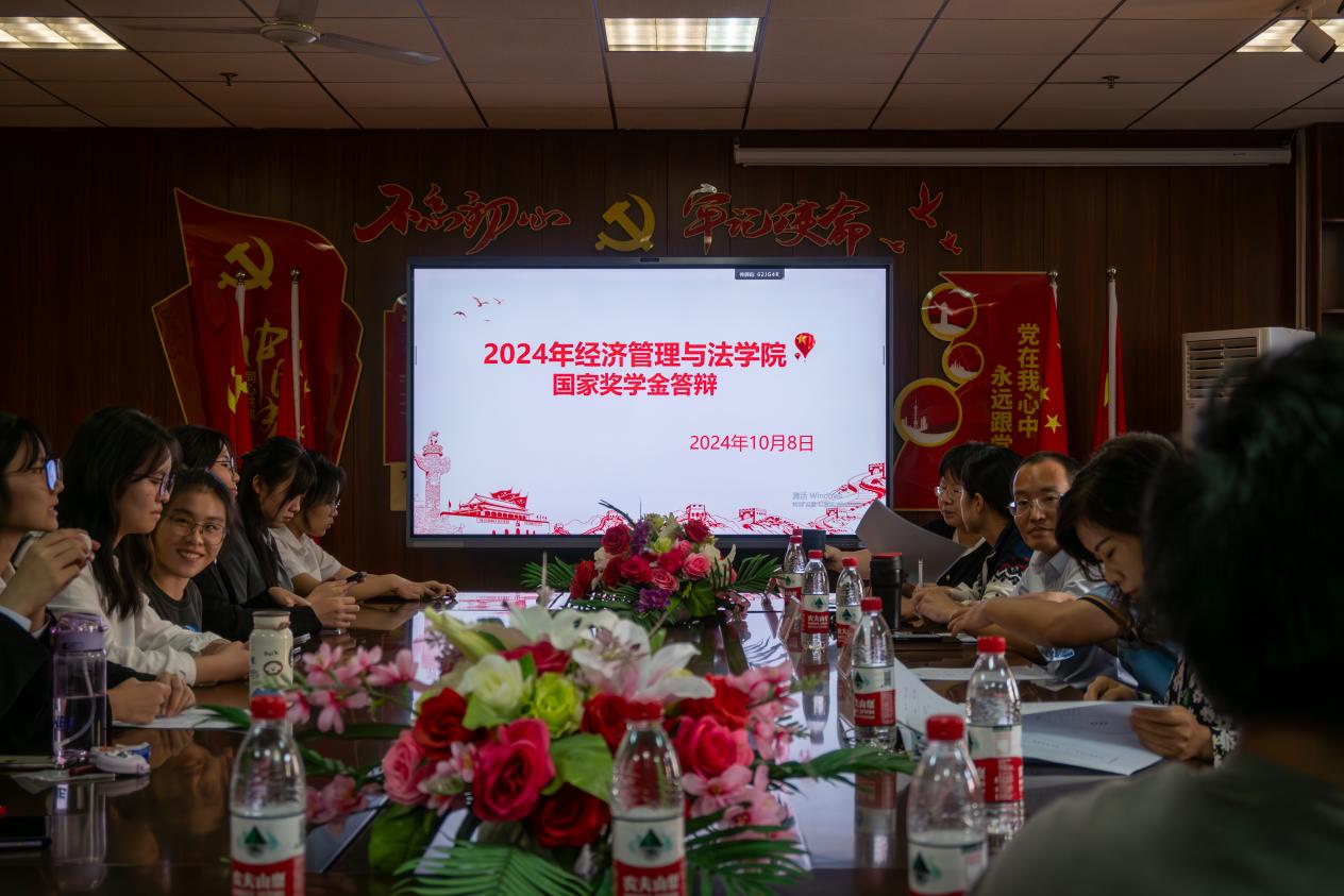 紧接着,参加答辩的同学依次上台,进行了国家奖学金的答辩展示。同学们分别围绕学业成绩、实践经历和个人成长历程等方面通过PPT进行汇报,激情洋溢、声情并茂,赢得了现场评审老师和学生代表的认可。评审老师现场按照国家奖学金评审条件和要求,根据答辩同学的课程成绩、实践活动、科研经历等综合素质能力评分,并结合现场答辩成绩,进行了综合评定,确定了经管法学院2023-2024学年本科生国家奖学金拟推荐资格名单。