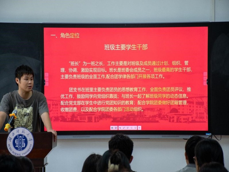 接着,徐科伟围绕班级负责人的角色定位和责任展开讲话。他谈到了班级建设的重要性,强调了班长和团支书在班级管理中的重要作用,鼓励班长团支书们积极发挥带头作用,带领班级同学共同进步。