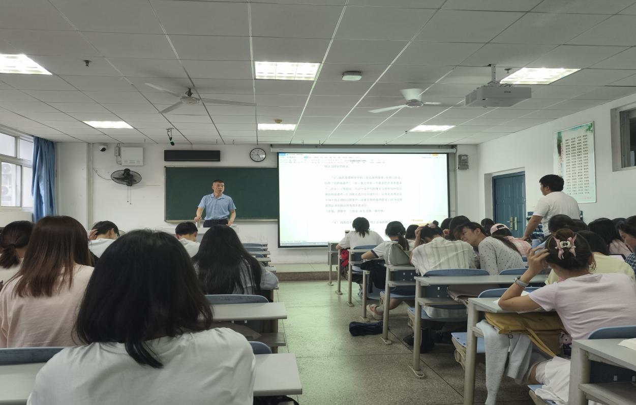 2025年5月15日,黄石市中级人民法院二级高级法官王又明走进经管法22级法学专业班的课堂,以"以事实为依据,以法律为准绳"为核心,结合逻辑学三段论演绎推理、法律责任构成要件及案件审理四大导向,为同学们带来了一场精彩纷呈的法律思维盛宴。