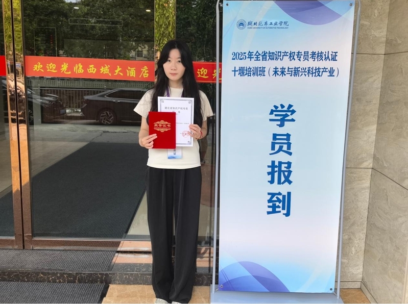 近日,2025年全省知识产权专员考核认证十堰培训班(未来与新兴科技产业)在湖北汽车工业学院圆满落幕。我院2024级法律硕士生吉许可同学成功通过考核认证,获颁“湖北省知识产权专员证书”,其所在的第7小组荣获“优秀专员小组”荣誉称号。