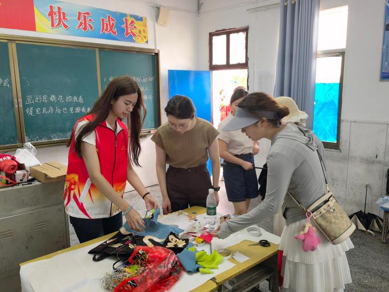 在“探路者”实践队的文创制作教室,队员们展示了精心设计的非遗文创作品:将布贴纹样与“三月三”非遗文化融合的文创布包及设计草图,布贴纹样与红色摆渡船文化结合的冰箱贴及设计稿。校团委老师拿起设计草图仔细端详的文化内涵给予充分肯定,并不时向实践队队长易阳阳询问布贴制作工艺及图案寓意,深入了解青年学子在文化传承中的创新探索。