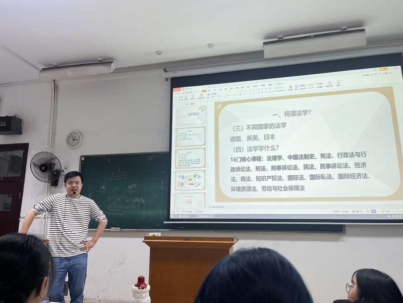 讲座伊始,江老师以“法学的历史脉络与核心逻辑”为切入点,系统阐释了“律、法律、法学”的内涵与关联,引导新生建立对法学学科的规范认知。他结合不同国家法律体系的特点,深入剖析了法学“由本国法律体系、政治制度和文化传统决定”的核心属性,帮助学生理解法学与社会发展的紧密联系。接着针对专业研习,他倡导“一种思维,一种技能,一个体系”的学习方法,主张法学生在大学期间要积极培养法学思维,提升逻辑思辨与法律适用能力。他还鼓励新生主动结交良师益友、发掘学术兴趣,并通过制定阶段性学习计划,平衡理论学习与校园生活,为长远发展奠定基础。此外,针对未来职业规划,江老师结合法学专业特色,梳理了考研深造、司法考试、公务员报考等多元发展路径,并重点强调伟德国际与社会实践的重要性。讲座尾声,江老师以“明确方向、科学规划、回馈社会”为勉,鼓励新生以此次活动为起点,在大学期间笃学深思、勇于探索,将个人成长融入法治建设的时代洪流。