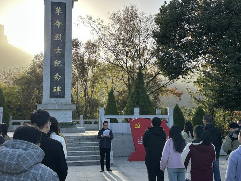 在庄严肃穆的革命纪念碑前,活动在奏唱国歌中开始。全体党员整齐肃立,向革命先烈敬献鲜花、默哀致敬,表达深切缅怀。党委书记邓光君同志围绕“从四中全会看初心使命”讲授现场微党课,引领党员在红色场景中重温入党誓词,强化身份意识与使命担当。活动中,支部为杨灿、熊莉萍、聂娟娟三位同志过了庄严的“政治生日”。