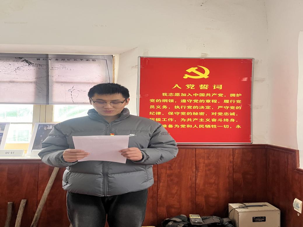 随后,支部在旧址宣誓区举行了2025年下半年新发展党员宣誓仪式,并由王润同志为15名新党员佩戴党员徽章。新发展党员代表陈博同志作表态发言,他表示,将以革命先辈为榜样,坚守入党初心。同时还要在学业上刻苦钻研,在服务中主动作为,切实把“为同学办实事、为集体担责任”融入日常,让青春在实干中绽放光芒。