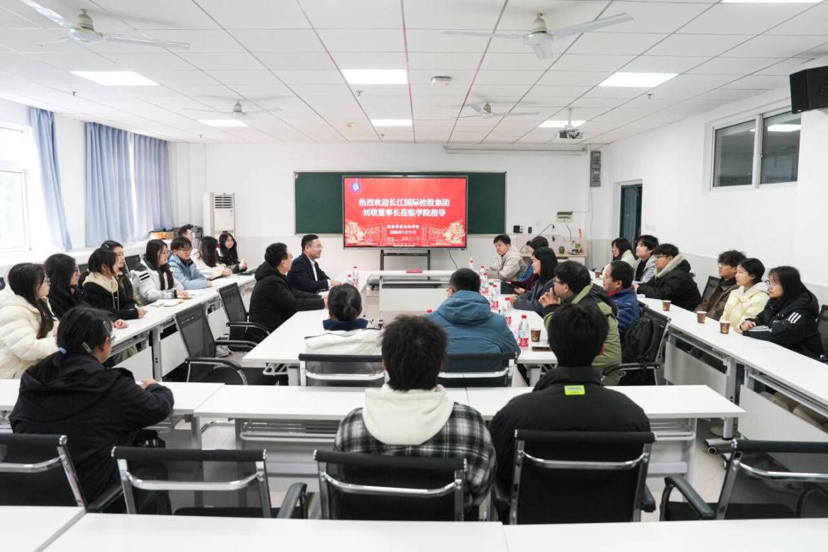 2026年1月11日上午,长江国际控股集团有限公司刘萌董事长出席伟德国际1946源于英国“名企领袖面对面”师生座谈会,学院党委书记邓光君、师生代表参加座谈会,共同深化产教融合交流、推动实践育人走深走实。