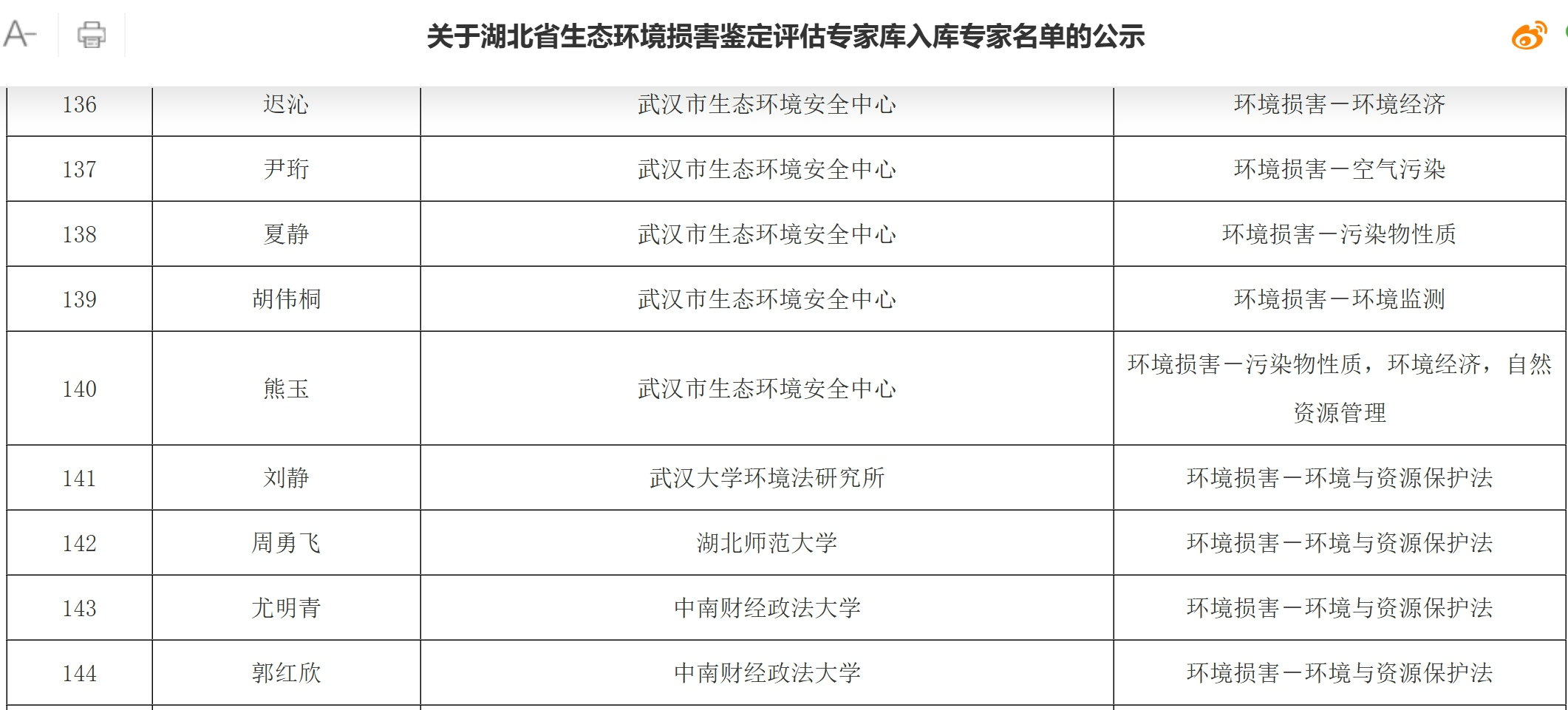 链接:关于湖北省生态环境损害鉴定评估专家库入库专家名单的公示-湖北省生态环境厅