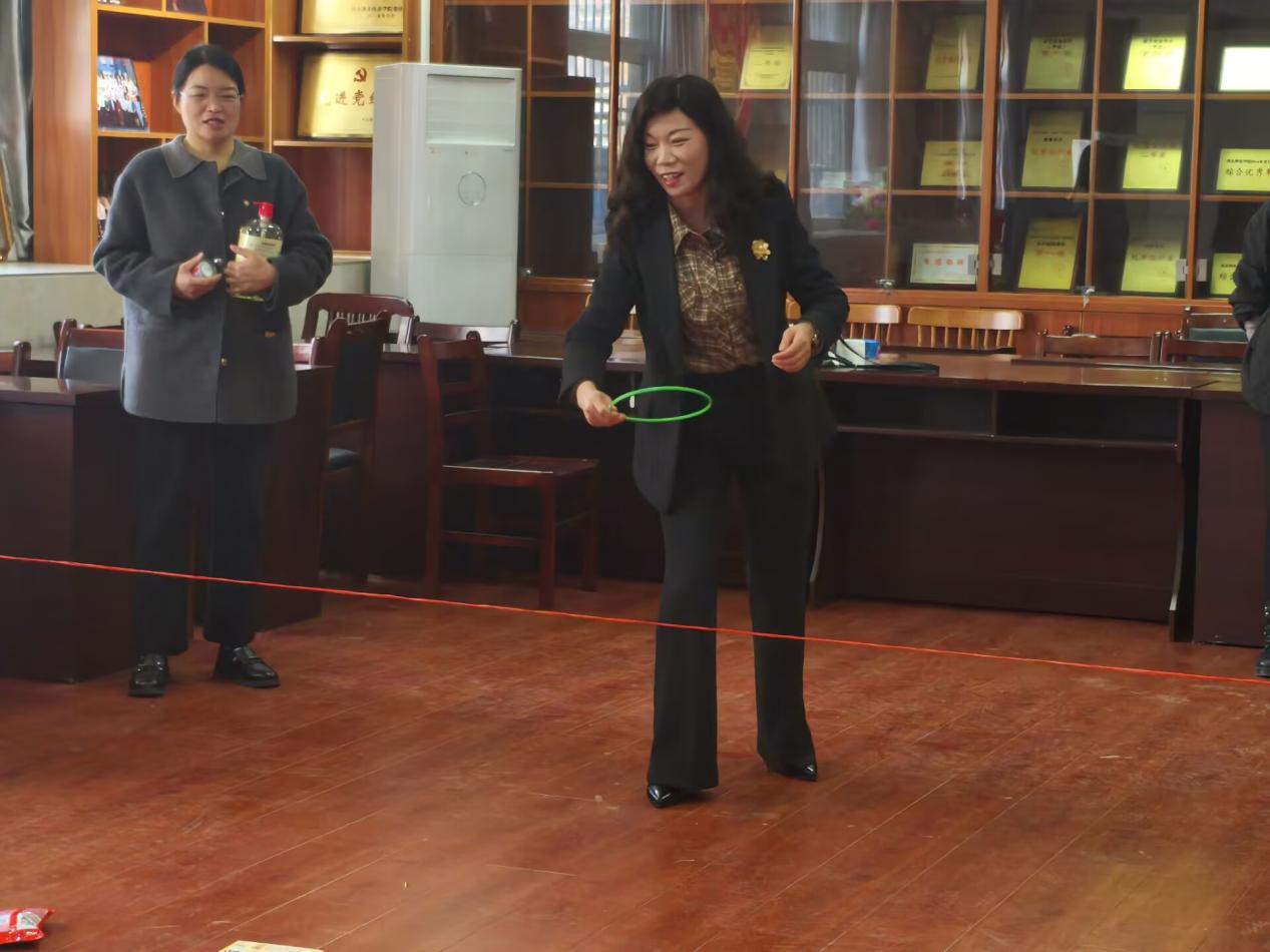 致辞结束后,趣味套圈环节火热开启。在工作人员的引导下,女职工们有序排队,手持套圈站在指定线外,瞄准目标凝神投掷。有的精准命中心仪奖品,引得现场阵阵欢呼;有的虽未套中,却也笑意盈盈,继续调整姿势尝试下一次投掷。裁判们严格把控规则,确保活动公平公正;礼品兑换区前,套中奖品的女职工们喜笑颜开地领取对应礼品,现场一派其乐融融的景象。8 个套圈不仅套住了实用的奖品,更套住了满满的欢乐与情谊。