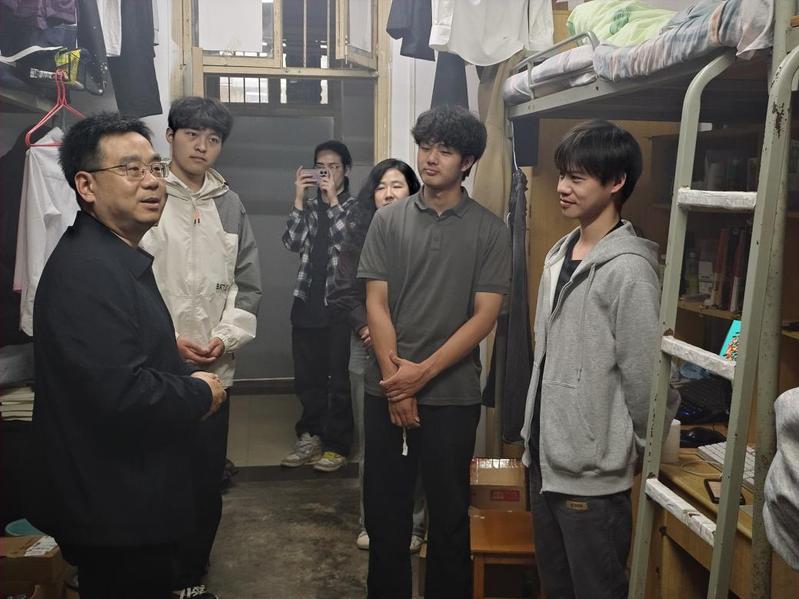 走访过程中,邓书记与同学们亲切交谈,逐一了解寝室人员返校到寝情况,细致询问同学们是否存在生活上的困难与诉求,并叮嘱大家有问题及时向辅导员和学院反映。随后,邓光君书记围绕安全工作作出重点强调与细致叮嘱:一是强化反诈防骗意识,提高自我防范能力,警惕各类电信网络诈骗,守护好个人财产安全;二是严守宿舍安全底线,规范使用电器,杜绝违规用电、用火行为,营造安全、整洁、有序的住宿环境。同时,邓光君书记着重强调了学生自律管理的重要性,勉励同学们合理规划课余时间,摒弃电子游戏沉迷等不良习惯,将更多精力投入到专业学习、技能提升和综合素质培养中,以饱满的热情、奋发有为的姿态,全力投入新学期后半程的学习生活,不负韶华、不负期许。