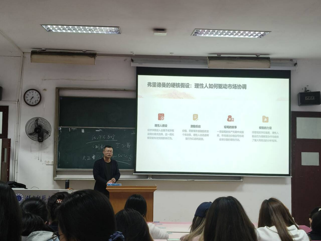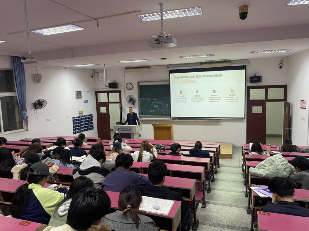 经济学的发展从亚当·斯密时期延续至数字时代,呈现出鲜明的时代特征与演变逻辑。王小晖老师通过“望远镜”的长远视角,带着学生们把握经济学发展的宏观趋势;同时又借助“显微镜”的细致眼光,深入探究理论与实践的细节关联。王老师将经典经济学理论与数字时代的新特征相结合,层层递进、深入浅出地解析了不同时期经济学的研究核心与变迁脉络,为学生们打开了经济学研究之门。